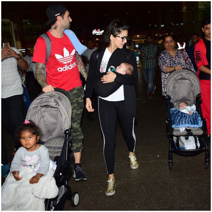 Sunny Leone And Daniel Weber Match Outfits With Kids In This Adorable Photo Movies News - Sunny leone and daniel weber in mumbai.