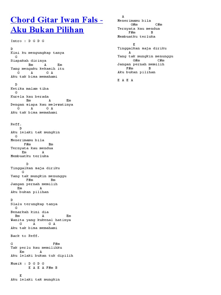 15 Chord Gitar Lagu Iwan Fals Yang Terlupakan Chordtela Basgalanos - F g (c) yang pernah terlupakan.