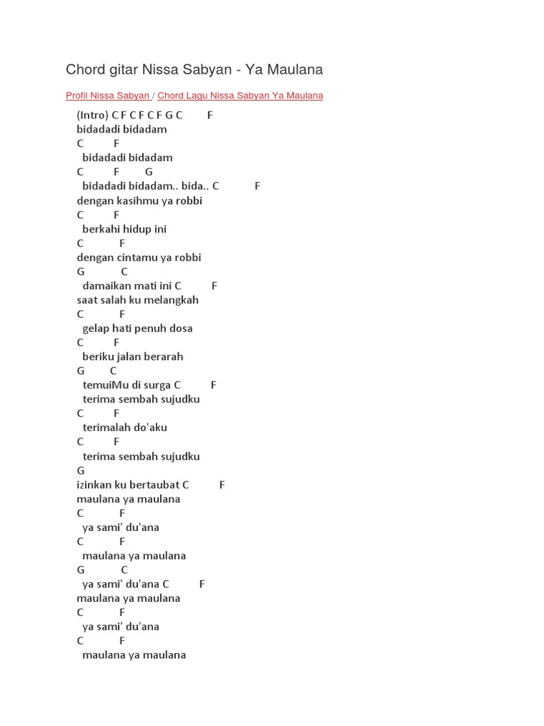 Chord Gitar Maulana Ya Maulana / C f tidadari riraram (3x) g.tira…. Chord Gitar Maulana Ya Maulana - C f bidadadi bidadam c f bidadadi bidadam c f g bidadadi bidadam.
