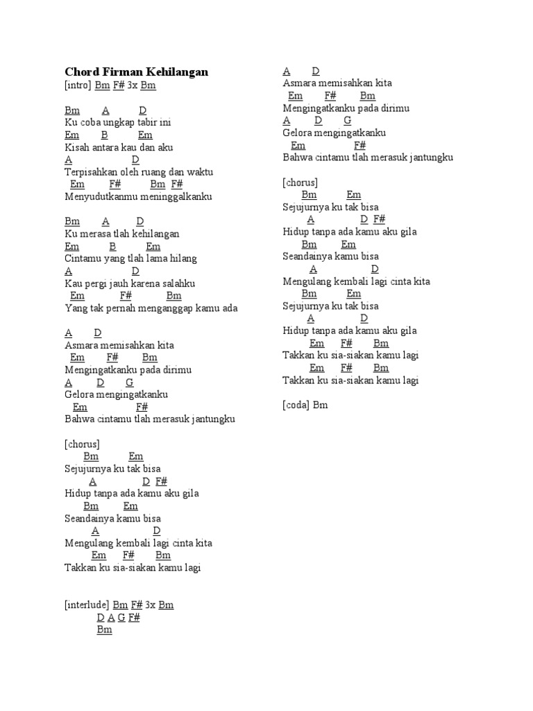 Chord Gitar Dan Lirik Lagu Kehilangan Firman Sejujurnya Ku Tak Bisa Hidup Tanpa Ada Kamu Aku Gila Tribun Wow - By adminon 29 maret 2015 248 views.