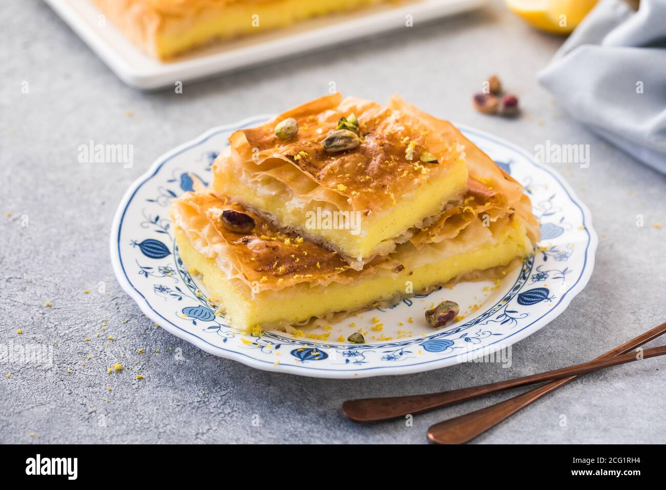 Galaktoboureko Vs Bougatsa / Temos uma sobremesa de massa semelhante no. Galaktoboureko Vs Bougatsa / Bougatsa is thinner, it has more fyllo, and the filling is softer i think.
