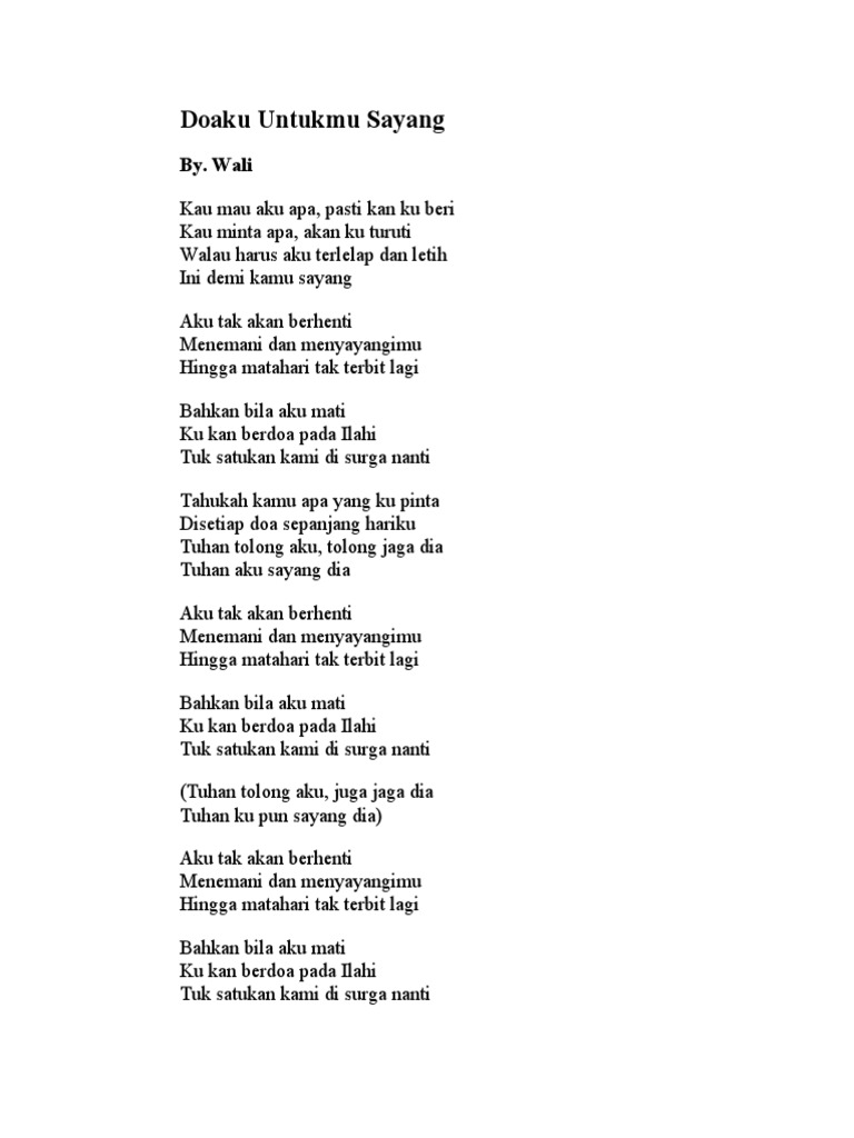 Lirik Dan Chord Lagu Doaku Untukmu Sayang Hit Band Wali - Yang sering bermain dimata hatiku ini.