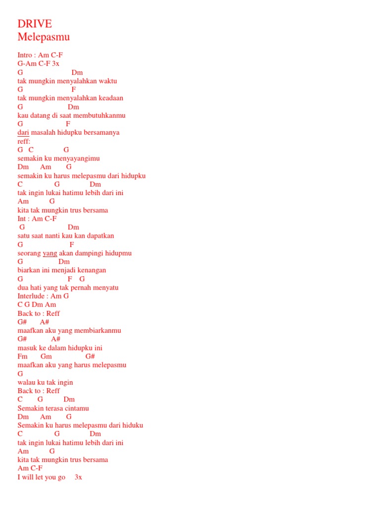 Lirik Dan Chord Lagu Melepasmu Drive - Pilih satu link dari 15 daftar dibawah untuk melihat video mp4, detail informasi dan kumpulan lagu terkait.
