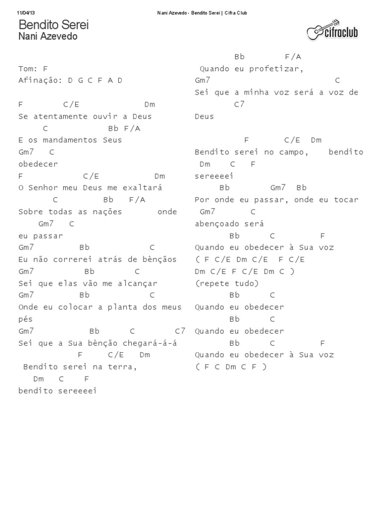 Bendito Serei Nani Download Baixar Bendito Serei Toque No Altar - Aprenda a tocar essa musica usando as cifras, tablaturas e versao simplificada com o cifras.