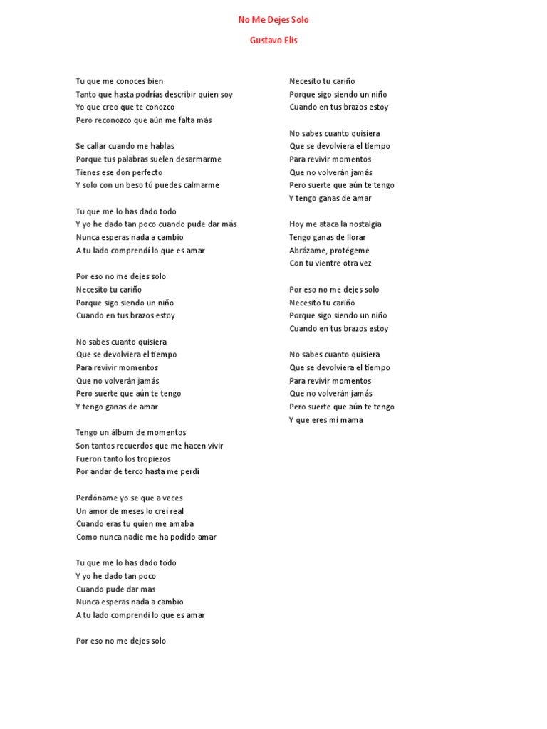No Me Dejes Solo Gustavo Elis Lyrics And Translations Beatgogo Com - Eso no me dejes solo necesito tu carino porque sigo siendo un nino cuando en tus brazos estoy ⠀⠀⠀⠀.