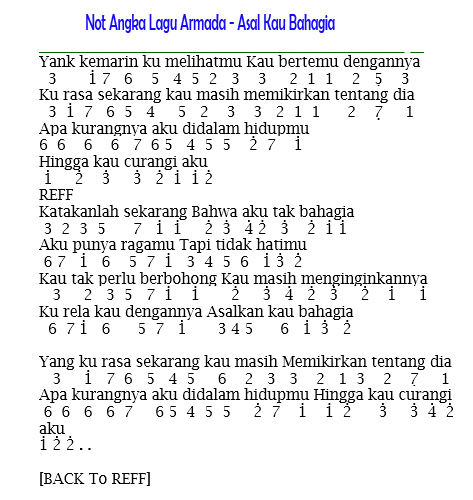 Not Angka Lagu Armada - Sampai jumpa pada postingan not angka lagu selanjutnya. Not Angka Lagu Armada - Ku rasa sekarang kau masih.