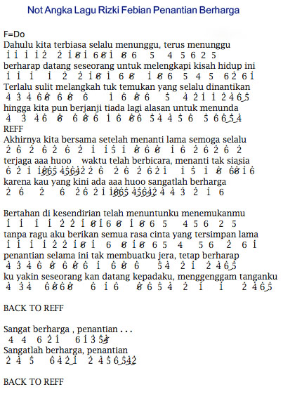 Not Angka Dan Lirik Lagu Rizki Febian Penantian Berharga Dunia Lirik Not Lagu - Filosofi kopi 2) not angka pianika lagu zona nyaman fourtwnty (ost.