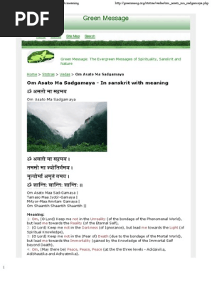 Preview Of Om Asato Ma Sadgamaya In Sanskrit With Meaning Mantra Vedas - Om asatoma sadgamaya mantra lyrics: