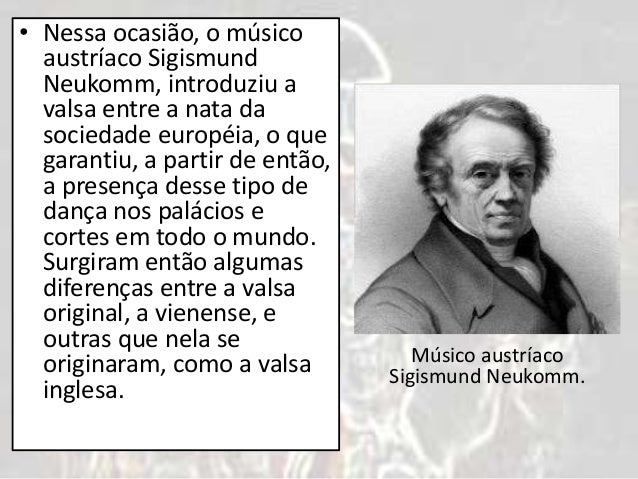 Origem Da Valsa - Muitos hinos da tradicionais sao no ritmo da valsa: Origem Da Valsa / As valsas foram muito tocadas nos saloes vienenses e muito dancadas pela elite da epoca.