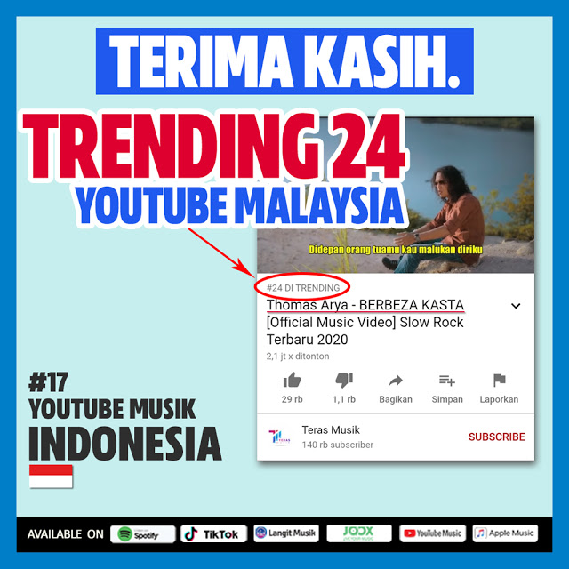Lagu Thomas Arya Trending Di Malaysia Dan Indonesia Ini Yang Dikatakan Label Elta Record Playlist Kamu - .sudahlah cukuplah sampai disini percuma saja berkasih kita sudah tak sehaluan lagi perbezaan kasta yang jauh aku tau siapalah diriku terlalu dalam jurang pemisah kasih sudah berakhir di sini saja didepan orang tua mu kau malukan diriku kau bandingkan aku dengan dirinya kau hina.