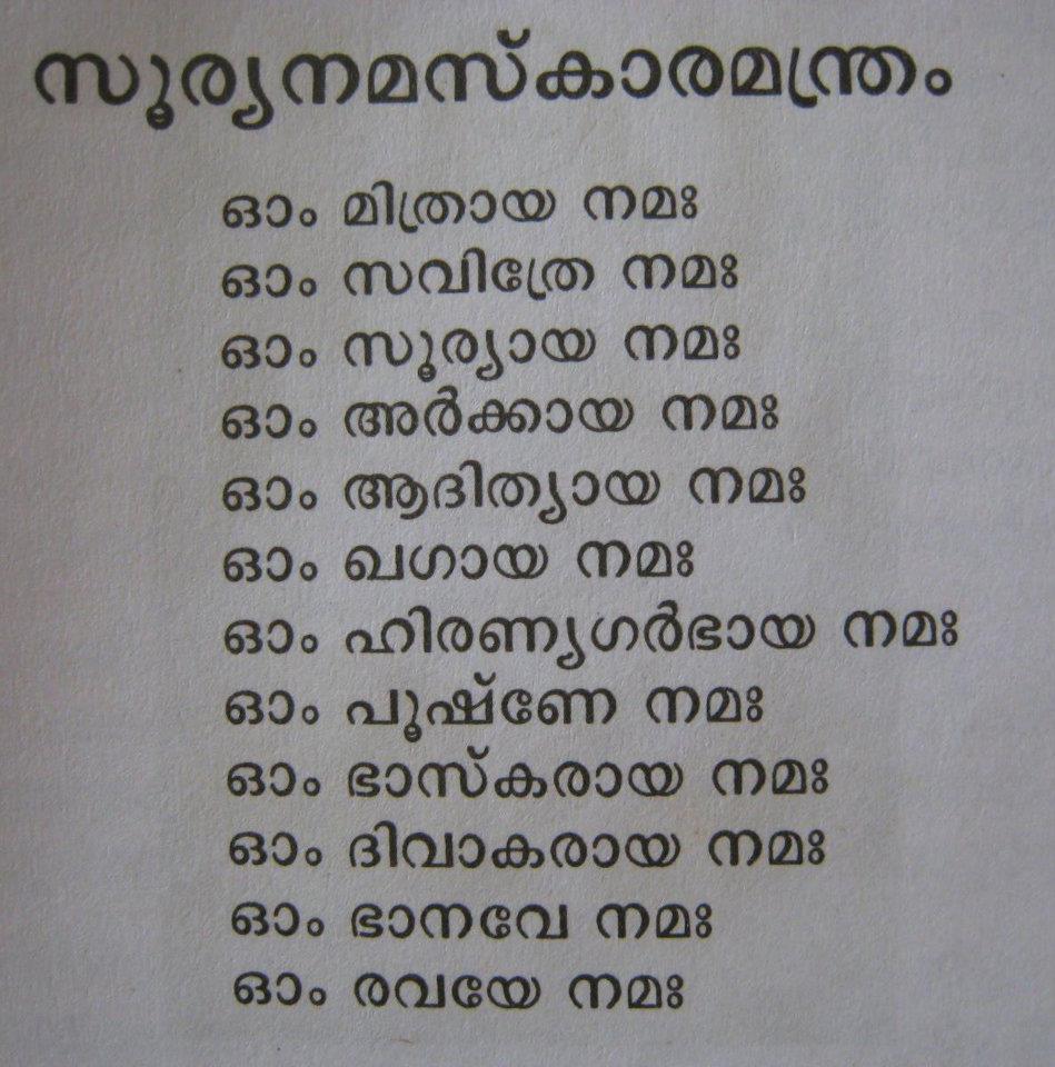 Surya Namaskar Mantra Malayalam - As the practice deepens, so do the benefits. Surya Namaskar Mantra Malayalam : These chants bring harmony in body, breath and the mind.