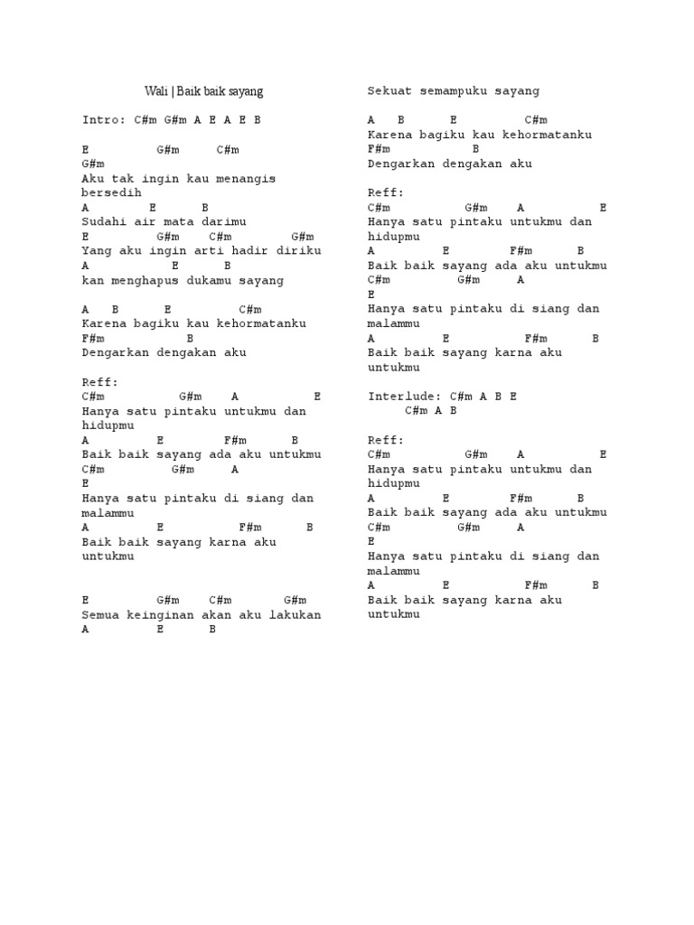 Wali Baik Baik Sayang Lirik : Lirik baik baik sayang oleh wali band. Wali Baik Baik Sayang Lirik : Nagaswara tv official 1 year ago.