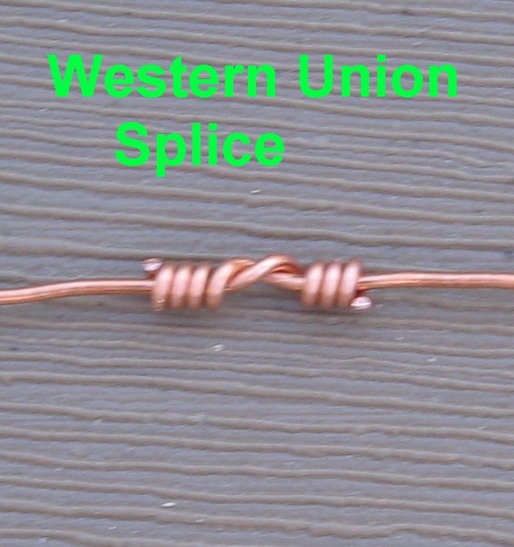 Western Union Splice - The western union or lineman splice was developed during the introduction of the telegraph to mechanically and electrically connect wires that were subject to loading stress.